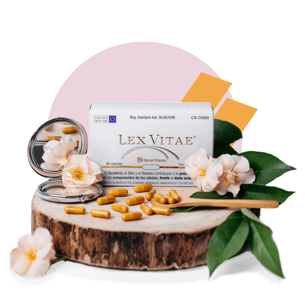 Regular cosmetics only reach the most superficial skin layers. Lex Vitae acts and takes care of your skin from inside out, with a powerful combination of vitamins, folic acid, Q10, antioxidants and other ingredients such as tocopherol, zinc and selenium.
